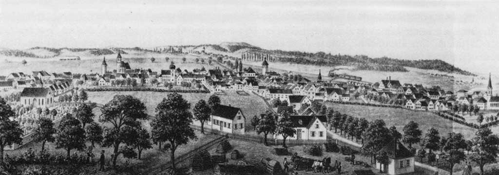 Blick vom Burgstall auf Gunzenhausen - Zeichnung von Heinrich Rührschneck aus Unterasbach (Ende 19. Jahrhundert)
